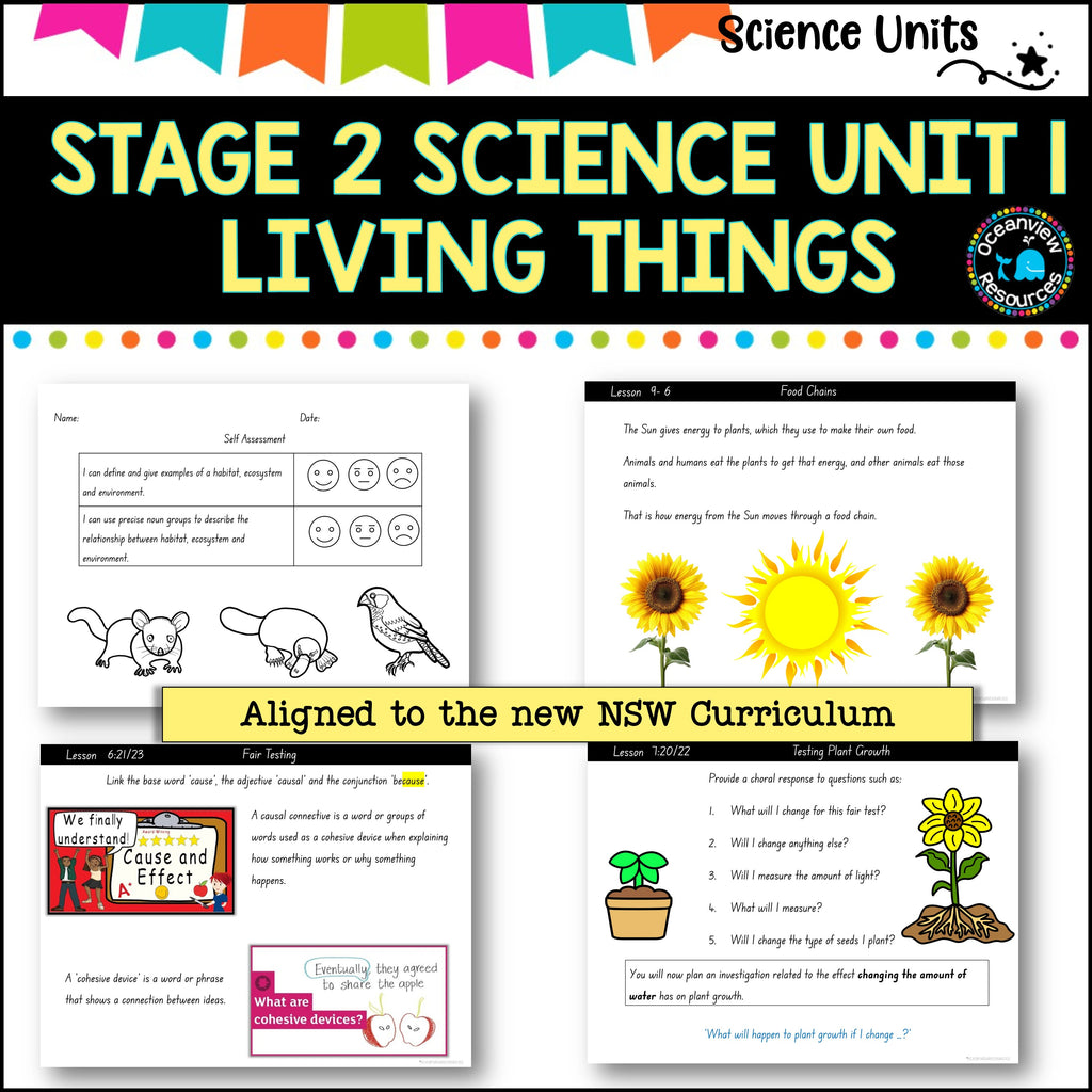 This unit is designed to compliment the recent unit rolled out by NSW Education Department 2025. It is based on the unit of work Unit 2 how living things depend on each other, Earth’s systems and energy to survive. The learning outcomes of this unit are